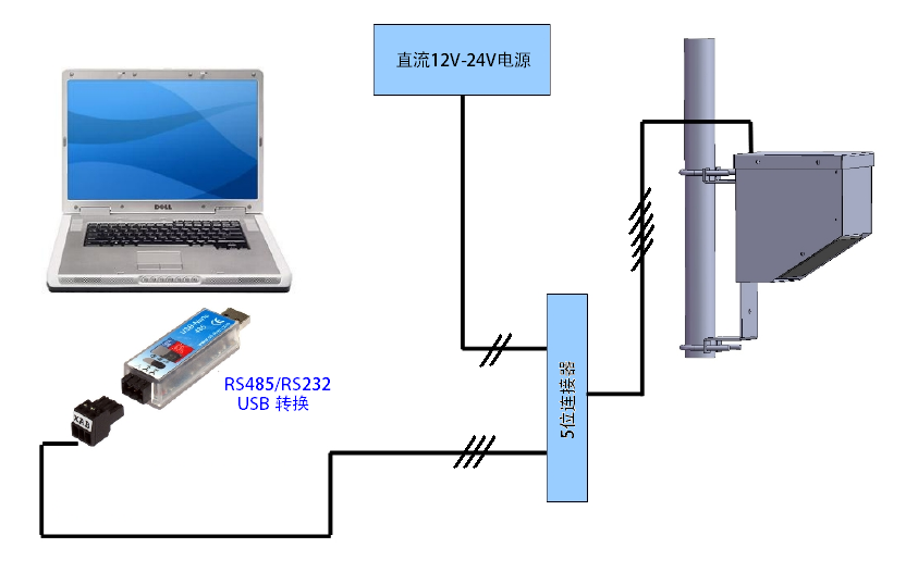 最小系统:使用一台计算机+电源连接成的最小系统示意图