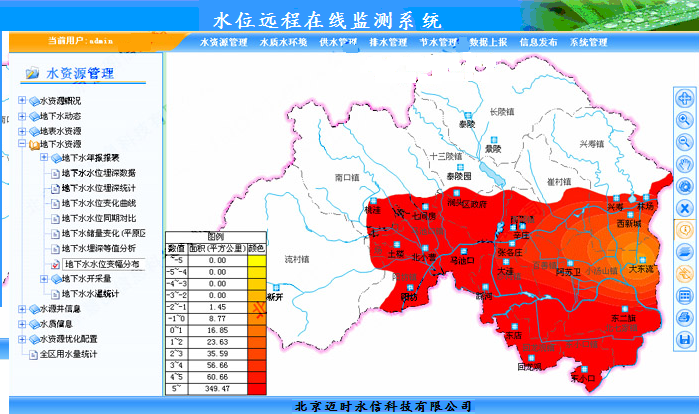 6)水位监测信息分析系统可对数据进行存储、分析、生成报表及实现各监控计量点分时统计、对比消耗量、做出日周月季年报表、曲线、柱状图等。;